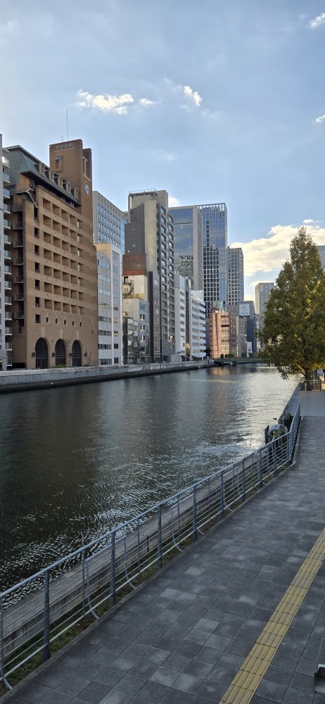 川沿いの遊歩道は風が抜けて最高にチルな雰囲気。 ベンチに座って、テイクアウトしたコーヒーを飲んでいる人もちらほら。お金をかけなくても、こういう贅沢な時間が過ごせるのが中之島のいいところですね。